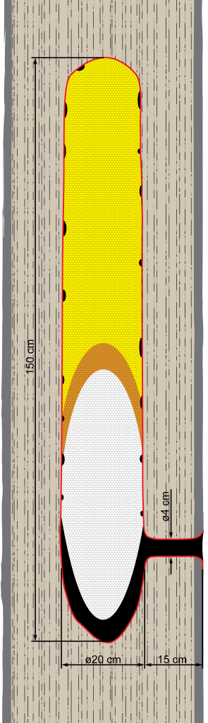 Ihåliga träd förekommer i stor variation med bland annat olika volym, ingångar och höjd från marken. Just vilka håligheter bina är ute efter i nordiskt klimat har undersökts i ett flertal studier.1,2 I den skalenliga ritningen visas ungefärliga medelvärden av de undersökta biträden. För att dubbelkolla att de funna egenskaperna verkligen föreställer binas preferens undersöktes dessa var för sig med hjälp av 250 speciellt framtagna svärmfångstkupor. Dessa kupor sattes upp parvis med bara en skiljande egenskap där inflyttningen av en bisvärm visade binas val.